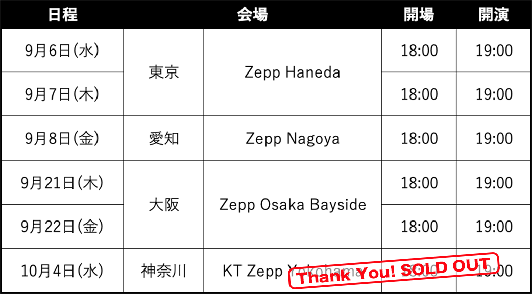 ※10月4日(水)神奈川 KT Zepp Yokohama公演の受付はございません。<受付URL>