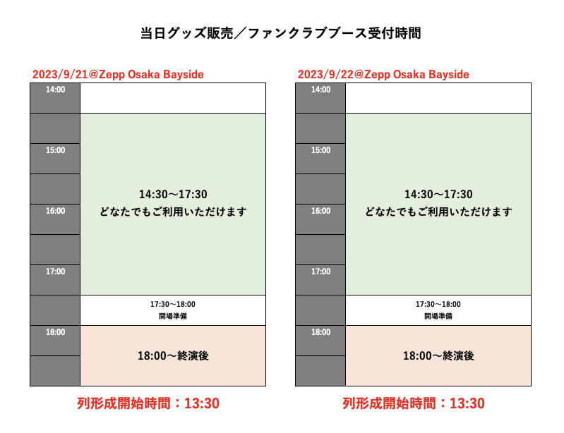グッズ販売・ファンクラブブース:14:30~終演後