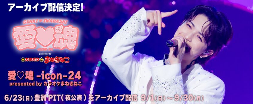 2024.08.28【2024/8/28(水)情報更新】6月開催のスペシャルイベントより豊洲PIT夜公演「愛♡魂-icon-24 Presented by カラオケまねきねこ」をカラオケまねきねこにて配信決定!詳細を発表!