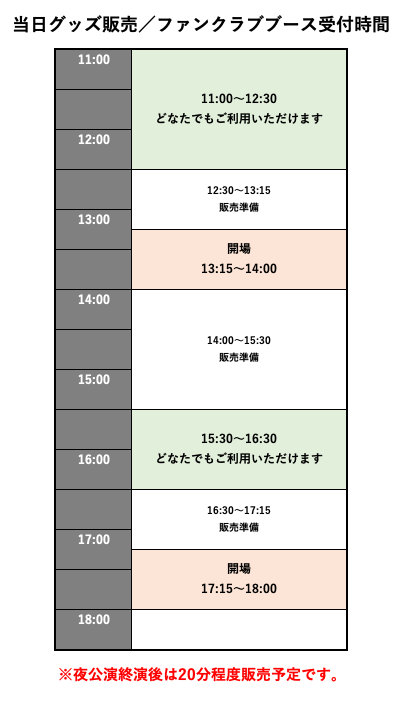 ●一部商品につきましては、昼公演と夜公演で在庫を分けております。