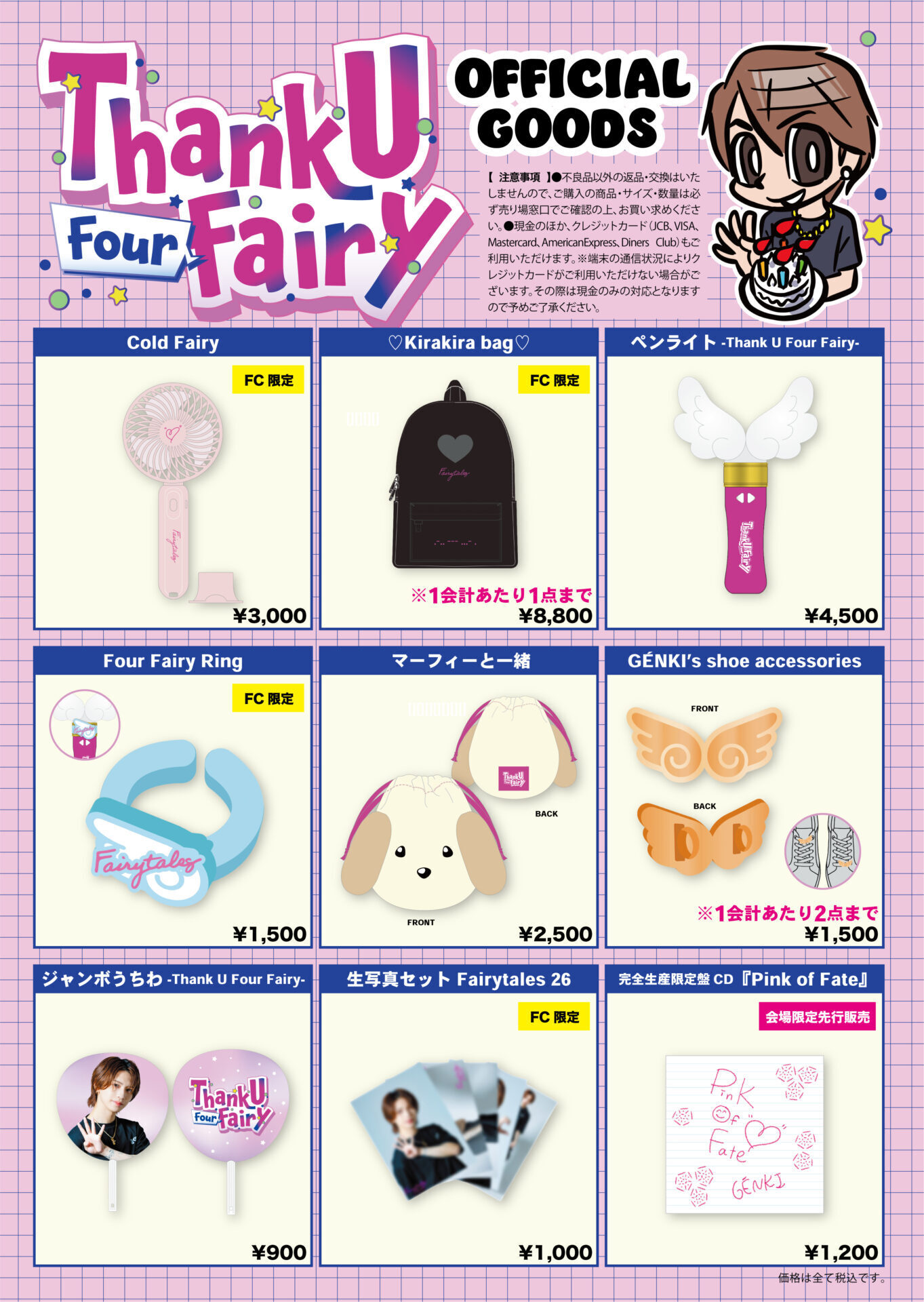 • 「Thank U Four Fairy」では会場グッズ販売を実施いたします。