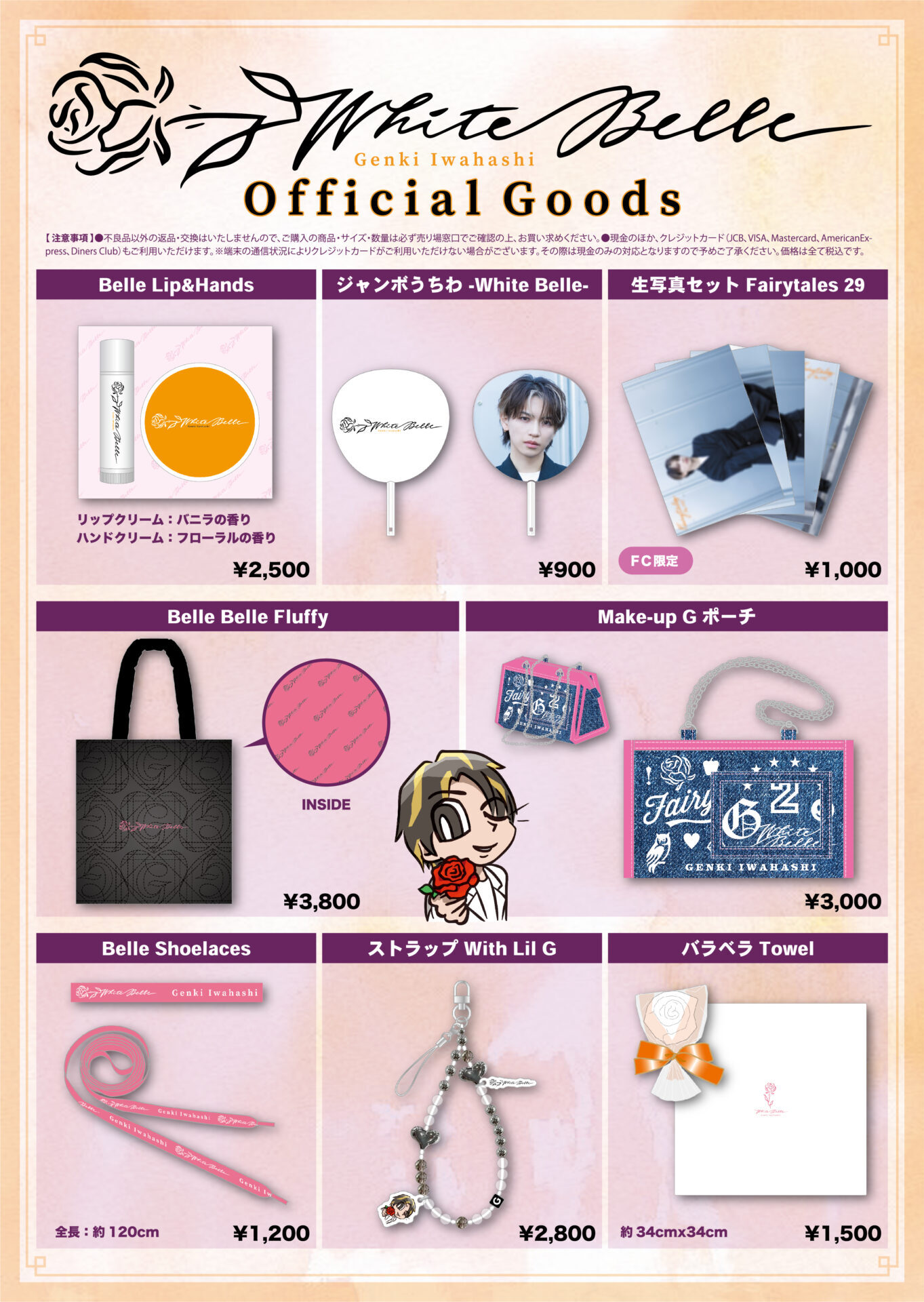 2月14日(土)に開催される「GENKI IWAHASHI White Belle」では、会場物販にてオフィシャルグッズの販売を行います。